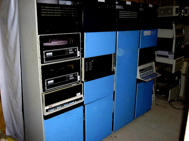 Lastly a more recent and much higher-resolution view... RP06 from DECSYSTEM20 in foreground, pdp-8e x2 & DF32 in background. The RK05 cartridge in drive '0' is labelled 'WD601 MAIN SIM' - presumably a reference to the hydraulic simulator rig the system was used on.