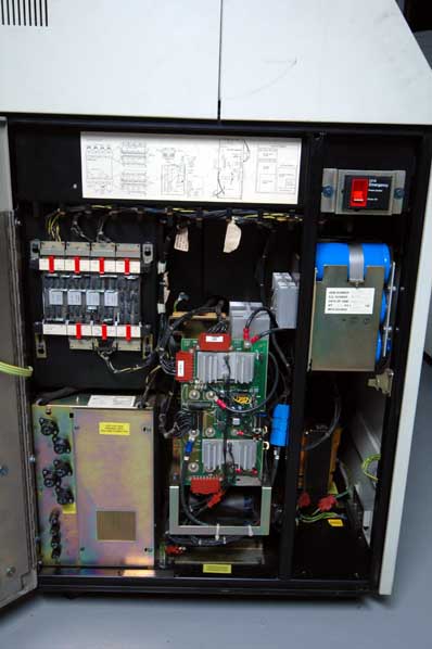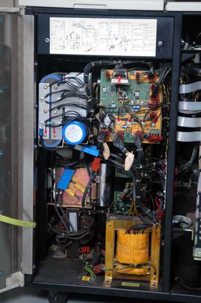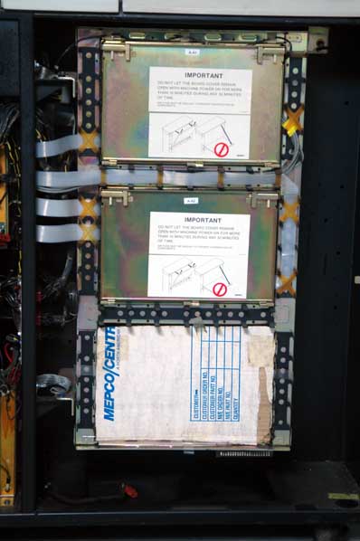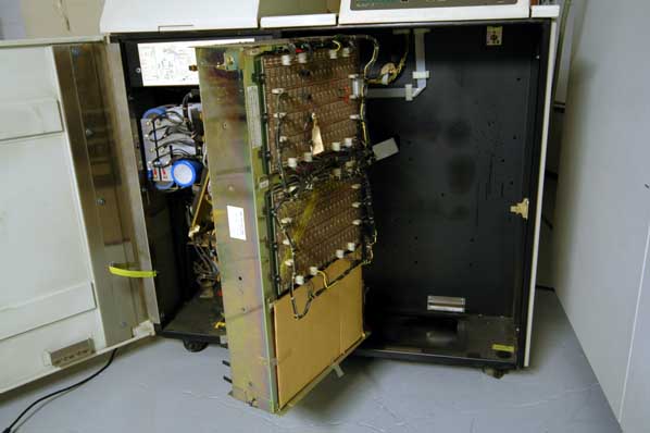 Opening up the back - disk drives on the left, I/O panels and main CB on