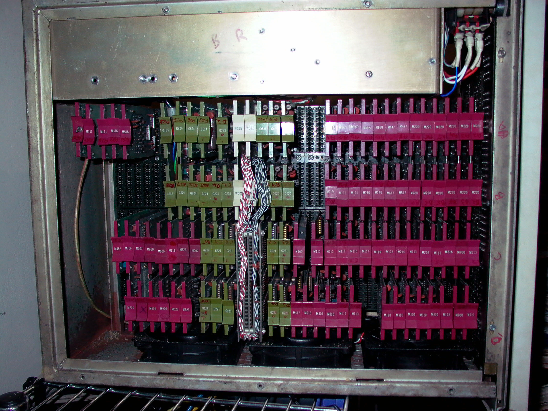A bunch of M-series modules. The green G-series modules are associated with the memory circuits, the corestack itself (4K) is the item with the bundles of red & white wires coming out.