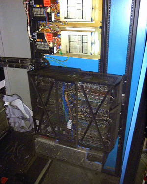 Looking in the rear of the front-end rack: the top of the 11/40 chassis