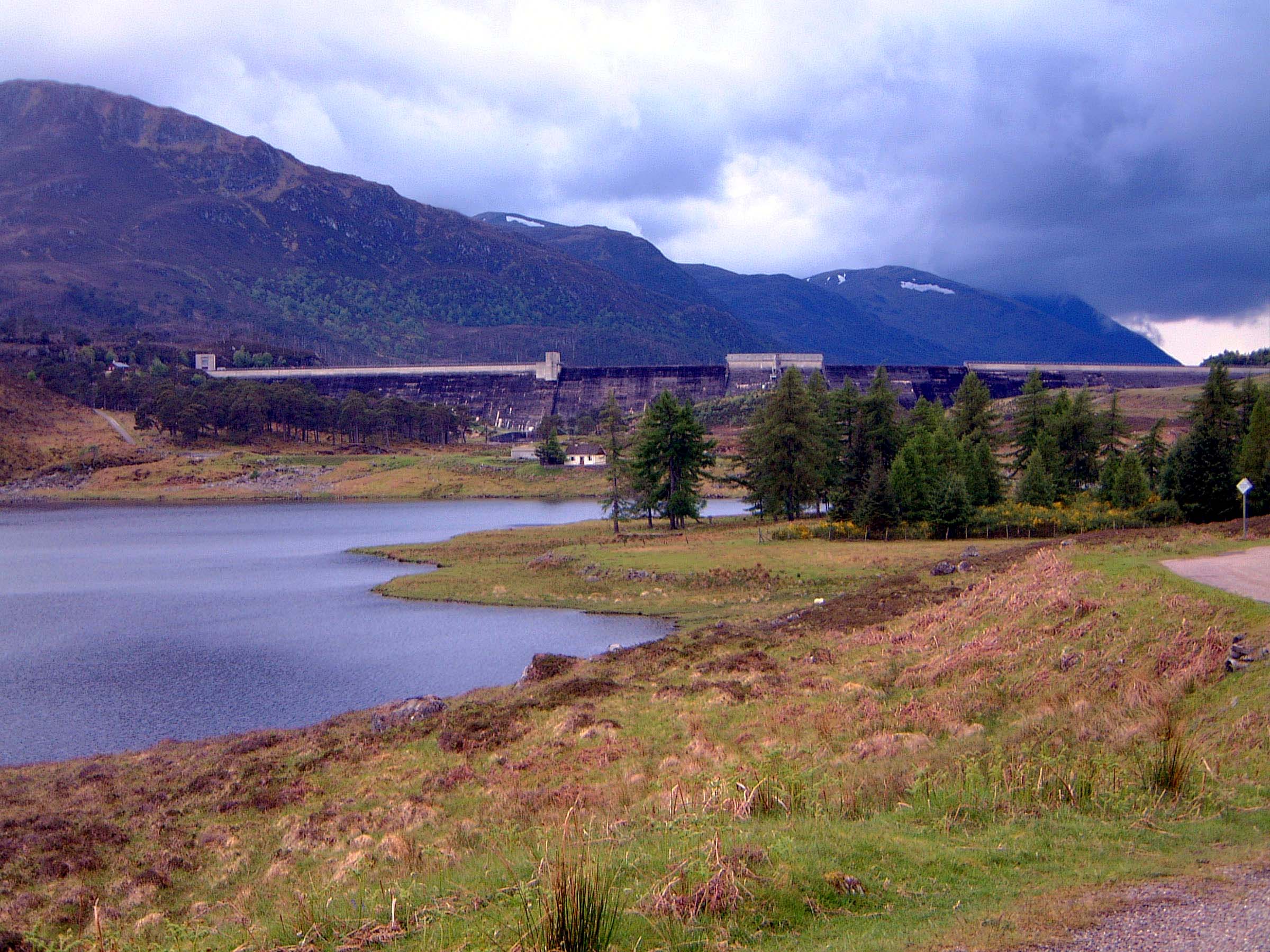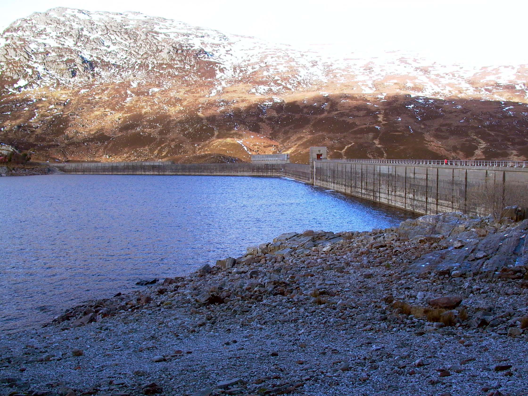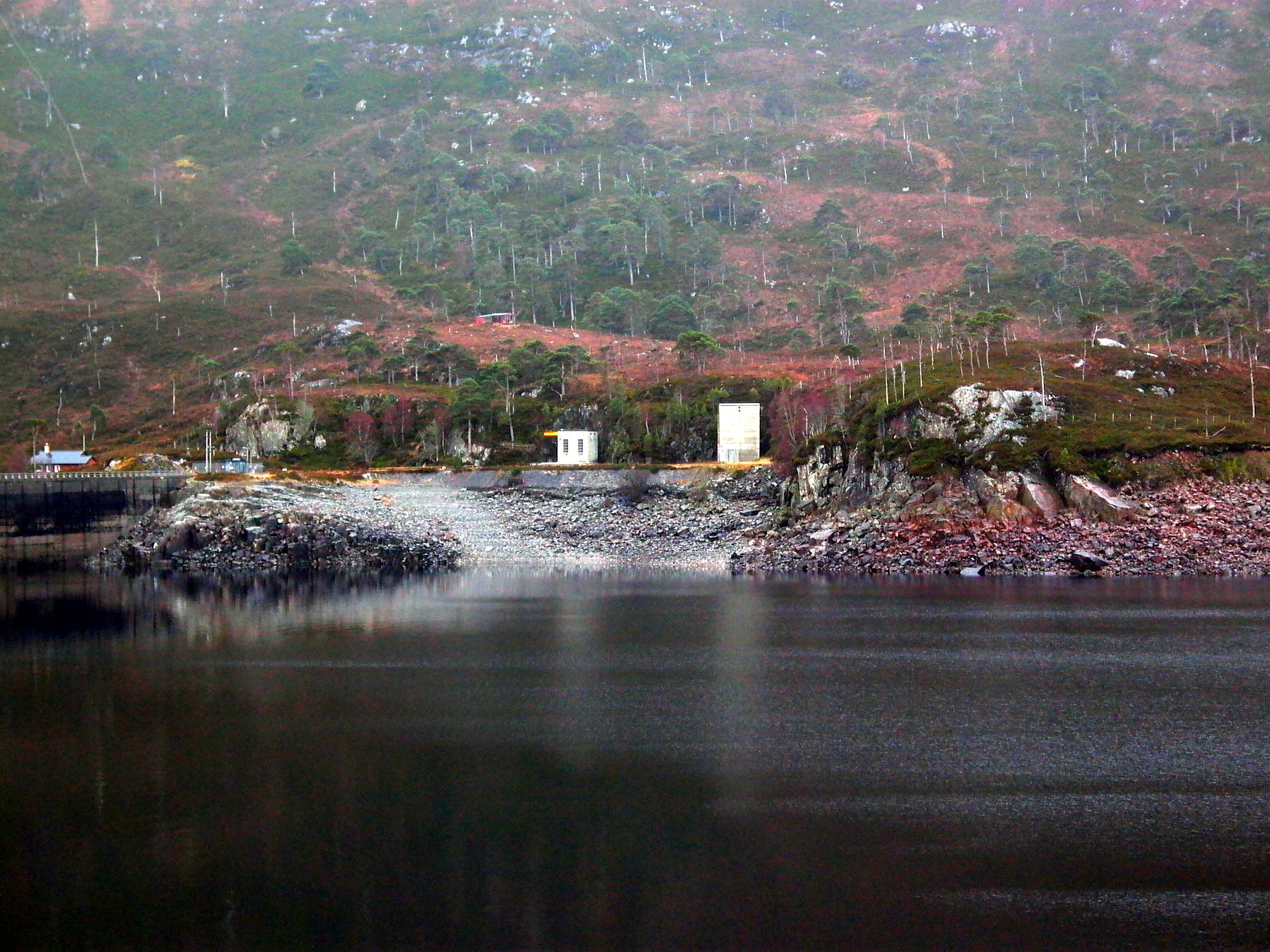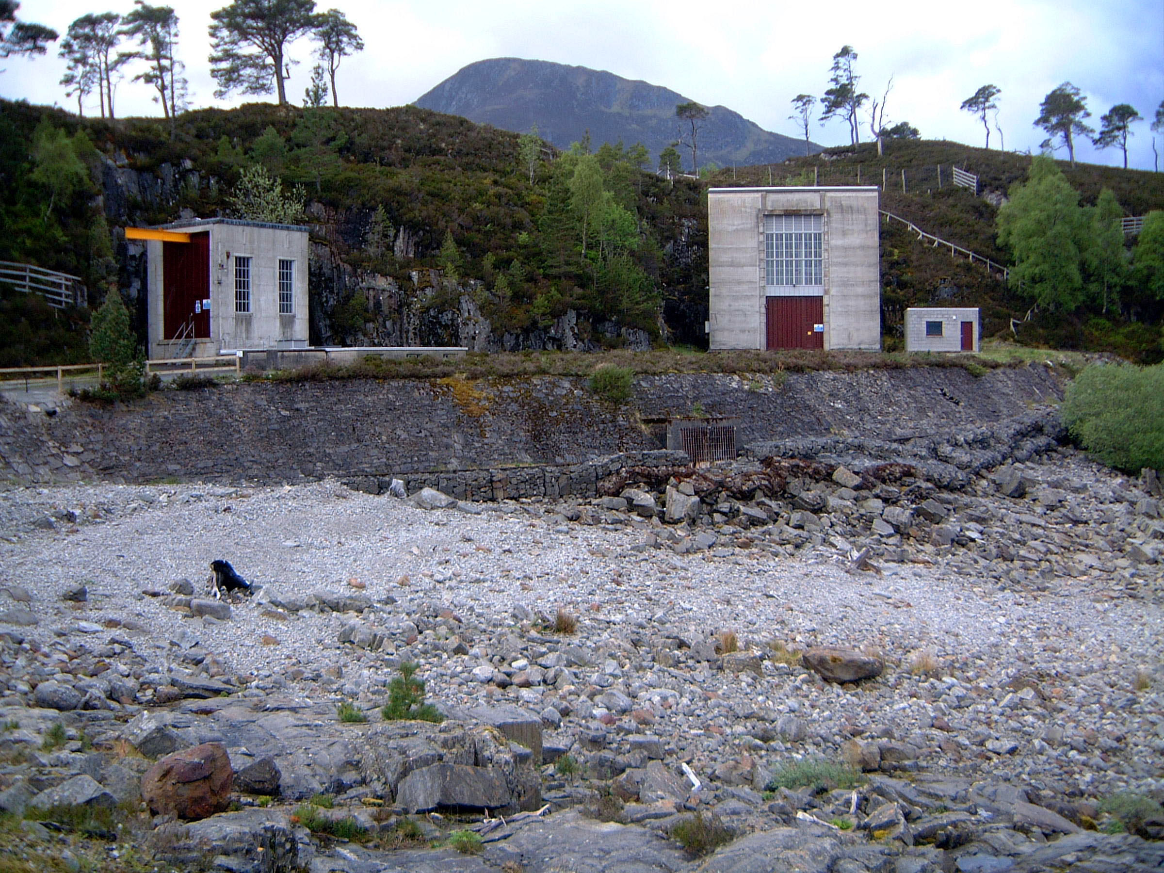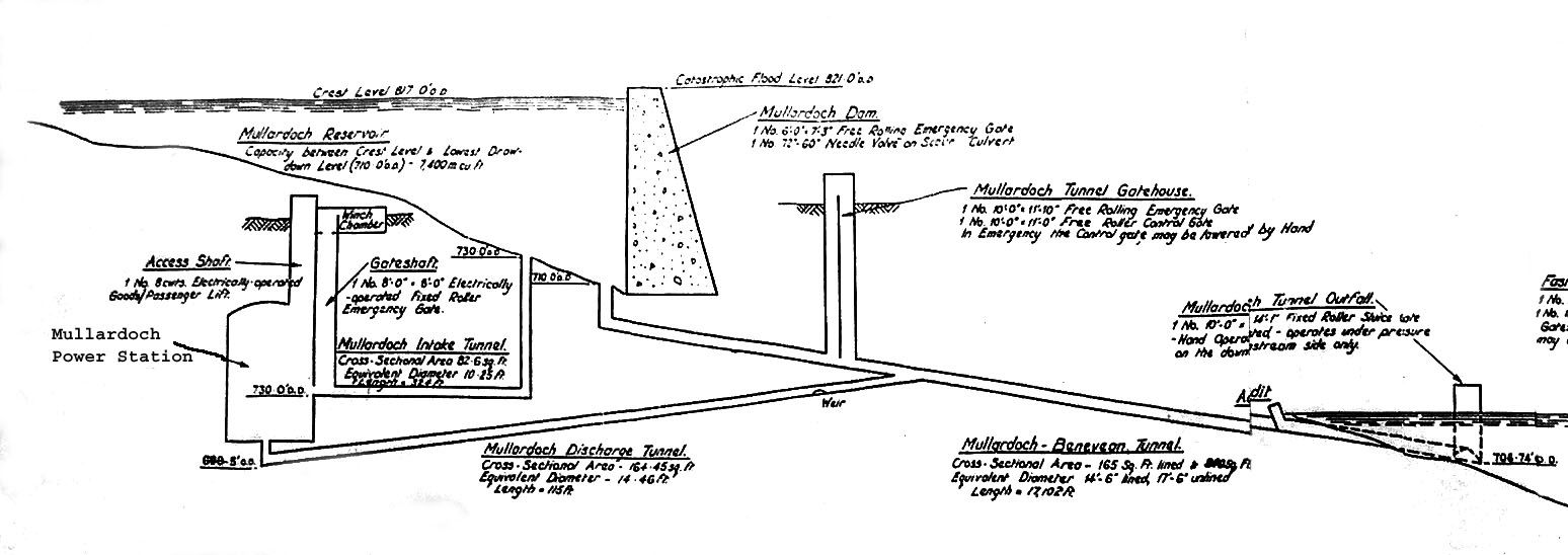 Mullardoch Dam & Power Station![]() A view of Mullardoch dam from a mile or so down Glen Cannich. Note the two sections of spillway on the dam crest, and the gatehouse at the left end of the dam. Photo: Mullardoch DamPhoto by: Mike Ross Looking at the rear face of the dam, water level drawn down about 35 feet. Photo: Mullardoch Dam - upstream facePhoto by: Mike Ross Looking back across from the far side of the loch, rear face of the dam on the left, surface works of power station (left) and gatehouse (right) in the centre of the picture, with area of spoil (from the excavation of the power station shaft) on the shore of the loch - the tunnel intakes are under water. I've added some legend to clarify the relative depths of the intakes. Photo: Mullardoch Dam - power station and gatehousePhoto by: Mike Ross Closeup of the power station surface buildings (left) and tunnel gatehouse (right). The screened opening at the bottom of the stone bank is the overflow pipe from the power station gateshaft. Photo: Mullardoch Dam - power station and gatehousePhoto by: Mike Ross Inside the gatehouse, looking down the gateshaft on the downstream side. The gate, as in this picture, is normally closed (since the water flows through the power station) - thus the water is a very long way down the shaft (about 100ft from the surface), as it is at the same level as the water in Loch Benevean. Apologies for the poor quality shot. Photo by: Mike Ross This diagramatic representation of the Mullardoch-Benevean tunnel will make things clearer - the text is leglible on the full-size drawing (click on it to see this). Photo: Mullardoch Dam - tunnel layout drawingPhoto by: Mike Ross Finally, an archive shot of Mullardoch dam taken shortly after it was completed. Photo by: Unknown Home Page Last updated 8th May 2004 Style © 1998-2001 Subterranea Britannica Words and images © 2004 Michael J. Ross |