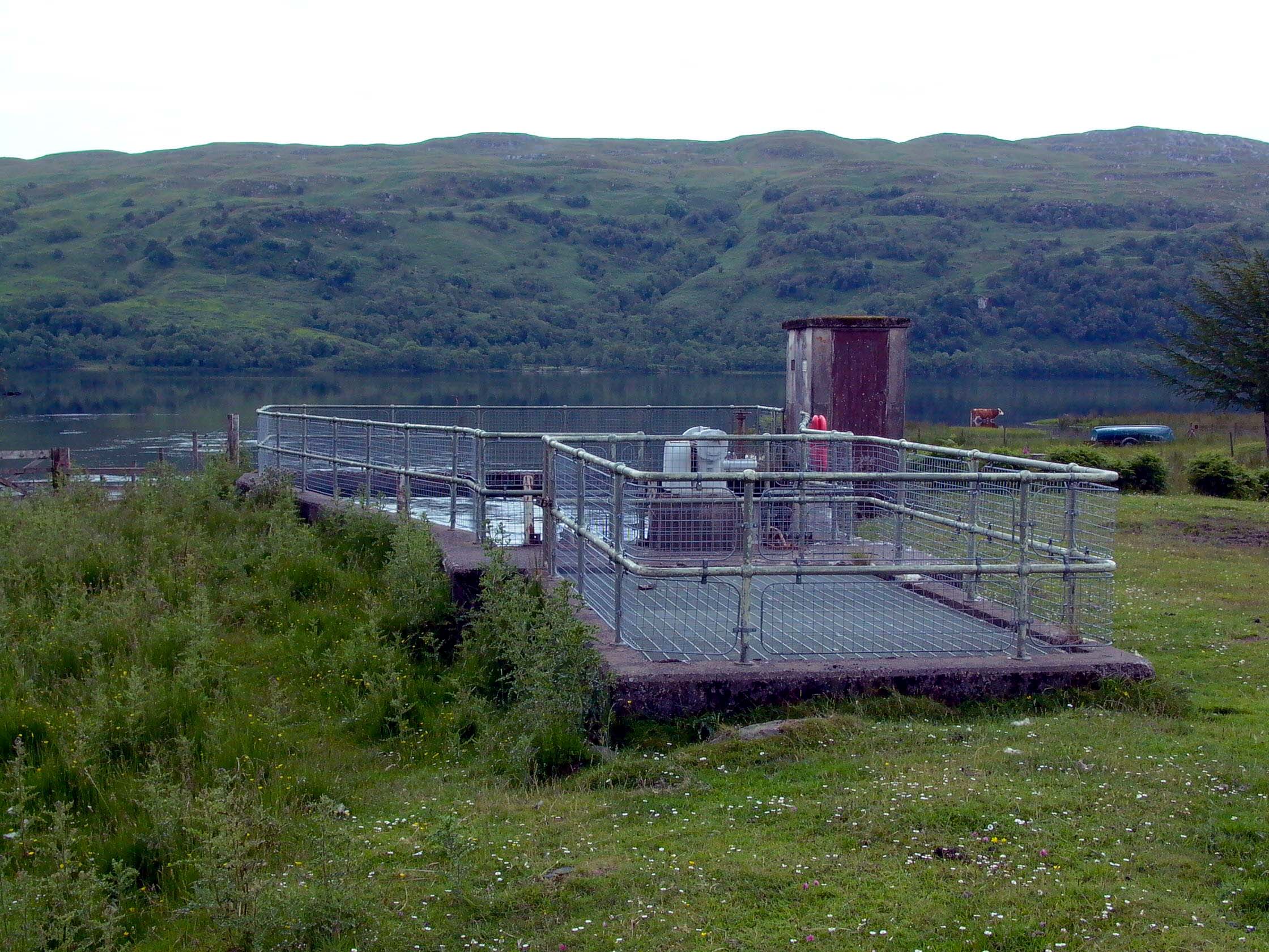 towards the loch... Photo by: Mike Ross ...where it finally discharges. Photo by: Mike Ross A simple flap gate controls the water, and allows the tailrace to be closed-off