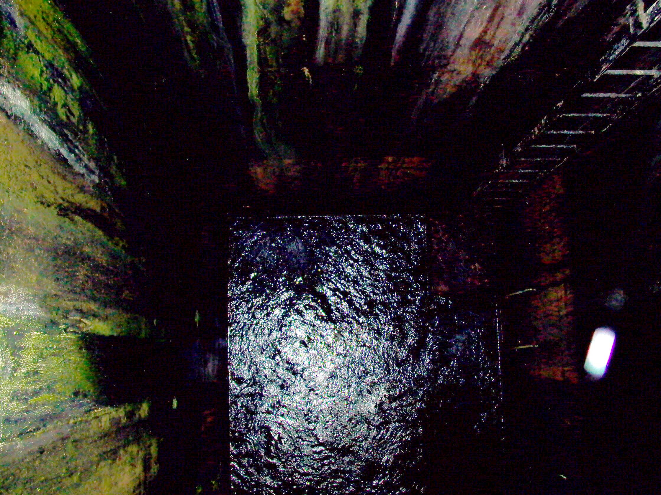a significant shaft, with water surging and stiring at the bottom. This