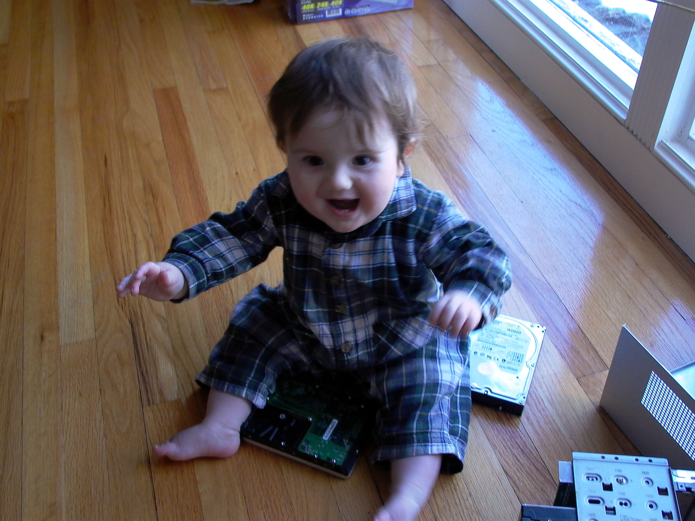Bouncing up and down and trying to destroy daddy's hard disks!