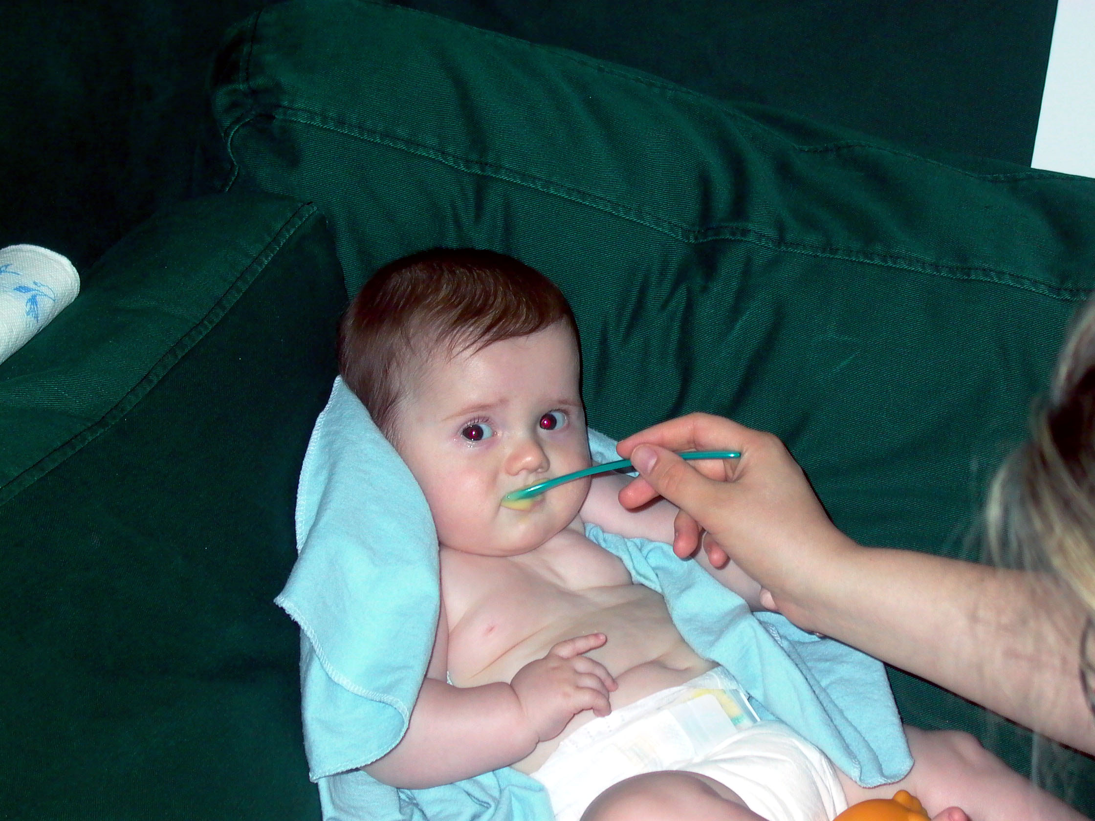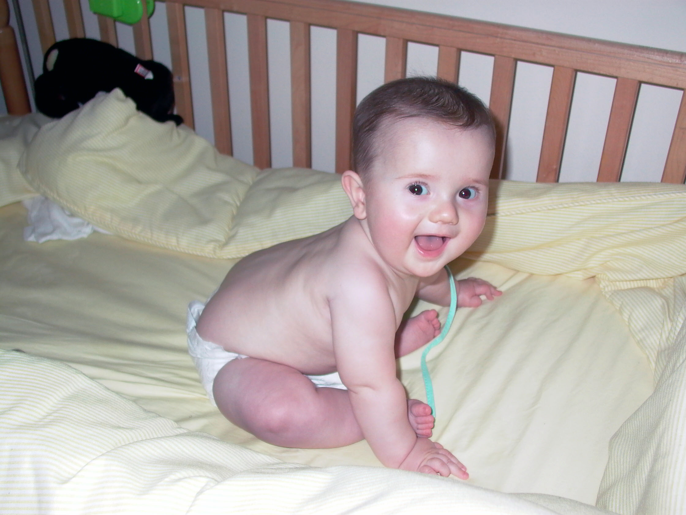 I'm 7 months, I have TWO teeth, and I'm STANDING!