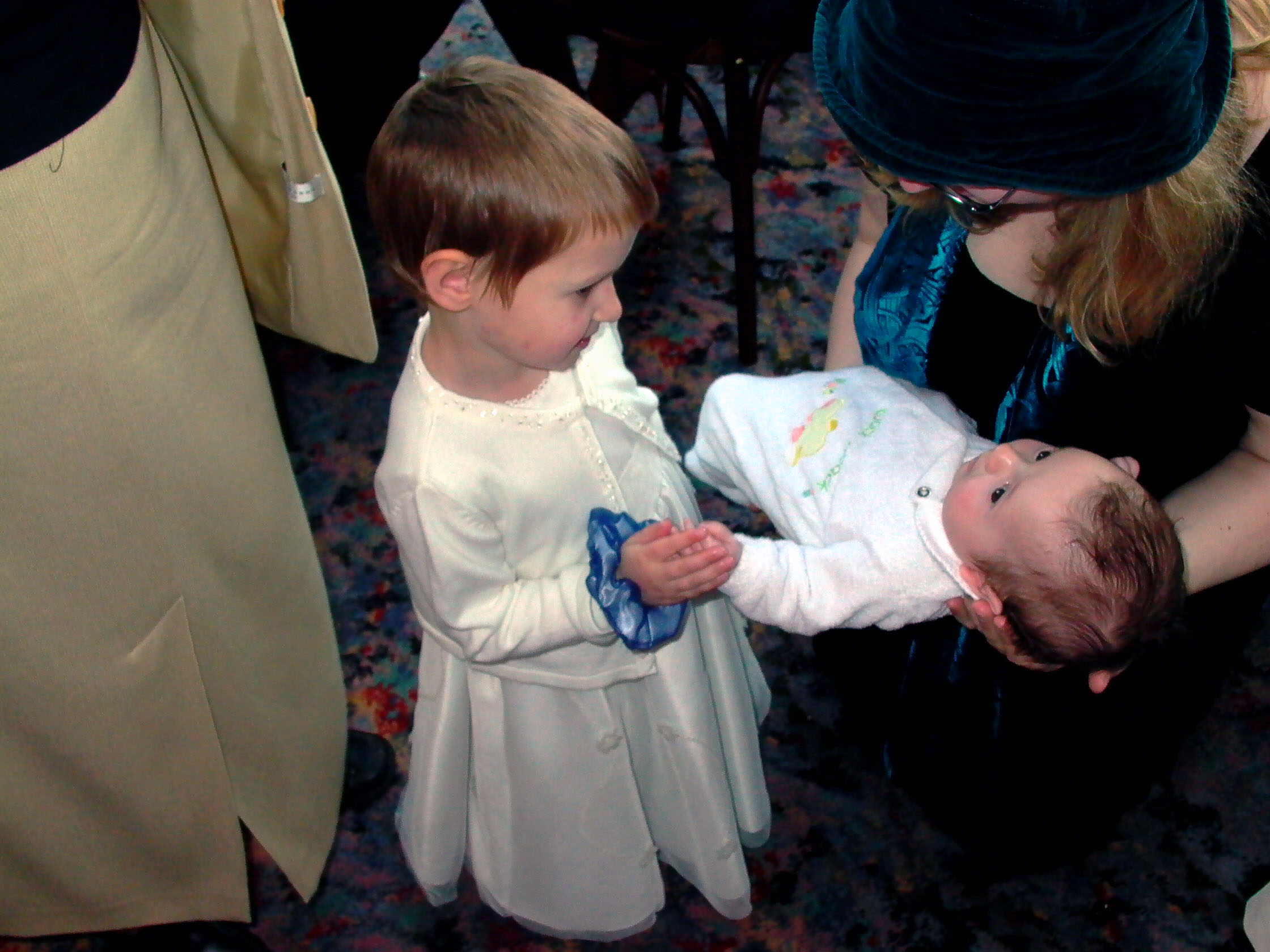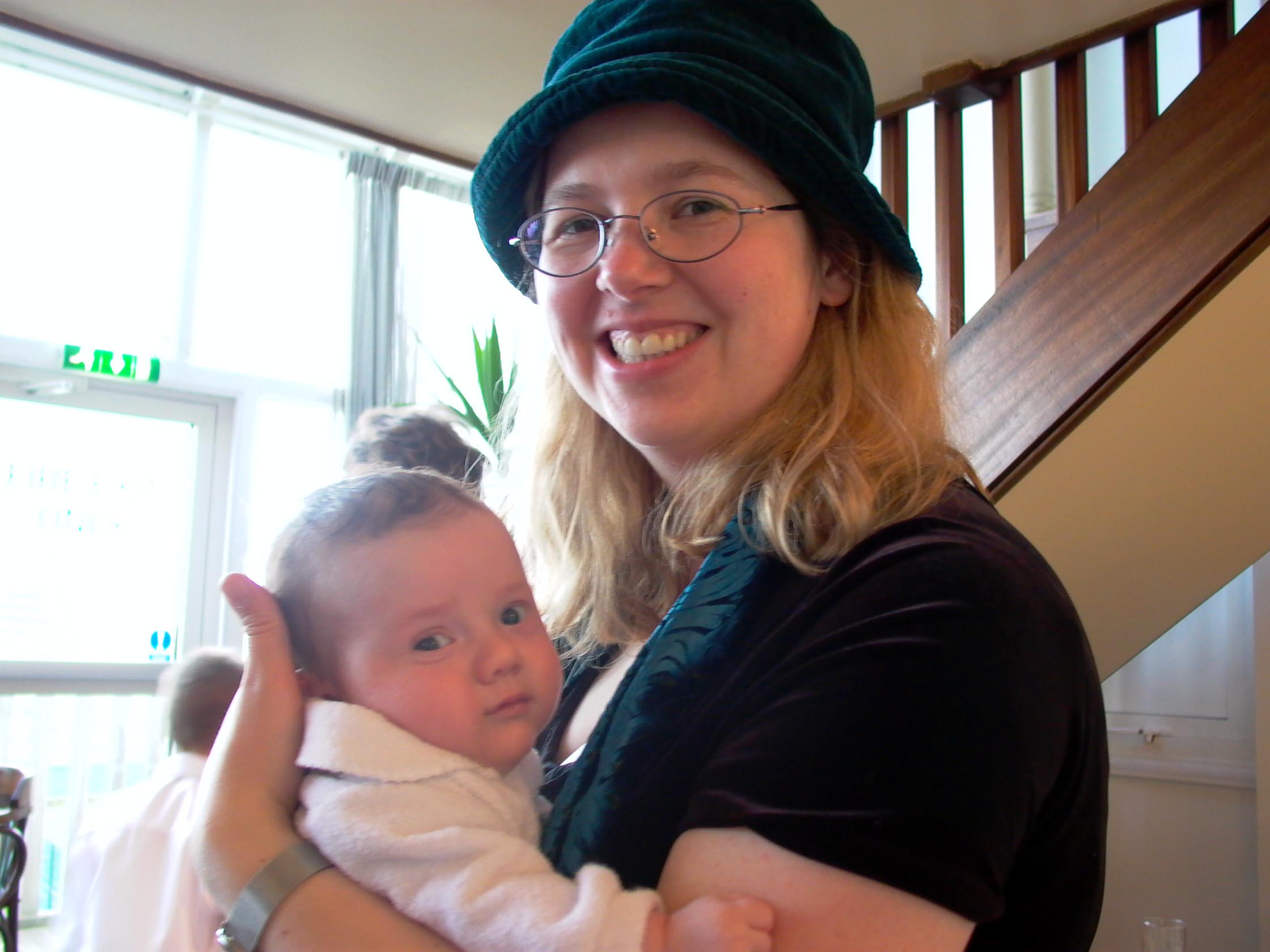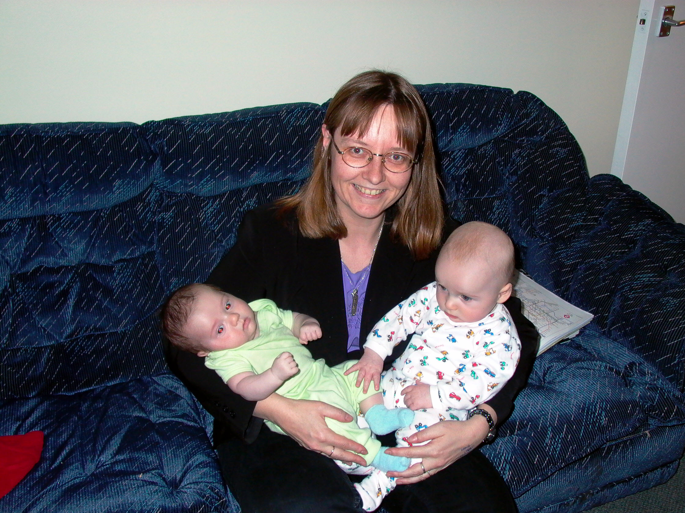 | Iain - with Clan Gordon After visiting Dingwall, and one set of grandparents, our next mission was to Eaglesham, and the other set of grandparents! Iain and granny Gordon Iain and the Carricks (friends of Gordon family) Iain wiggling with his cousins (age 6 weeks) (Iain, not the cousins!!) Iain and Mattie Scobie (another Gordon friend) Iain and Margaret Brown On our way further South, to a Gordon family gathering, we stopped off to visit our old friends Jon & Chris... and their daughter Meriel. Jon & Meri wiggle, whilst... ...Iain has a well-earned nap! Another stop: London - our old friend Sue, Iain on one arm, and Ryan (son of another friend, Jackie Lynch) on the other. Down to Portsmouth... Iain (two months old now!) with his uncle Andy and auntie Mel Iain and our beloved niece Cate, who was sadly lost to us in February 2004 Another pic of Iain and Cate Iain, Cate, and her big brother Tom. Iain getting a cuddle from mummy Click on the pics for full-size versions |