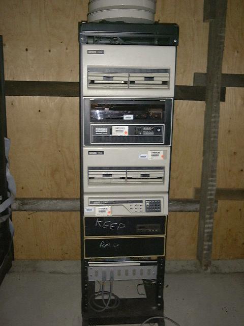 2 RL01s, rare fixed head disks (DF32) and an RX02 8" floppy,