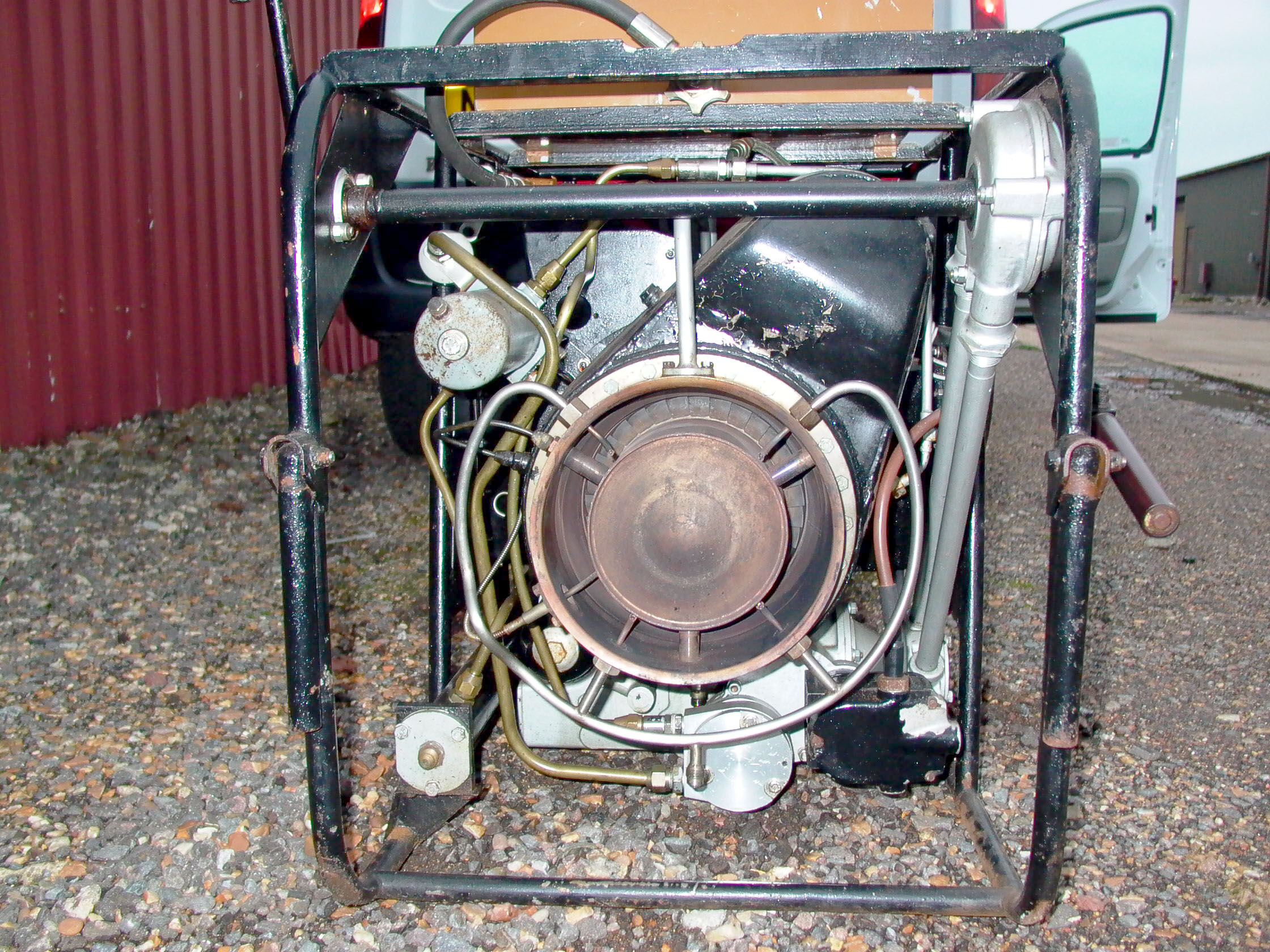 The noisy end. Another metal plate covers the exhaust duct. Starter motor is in centre, fuel & oil pumps below.