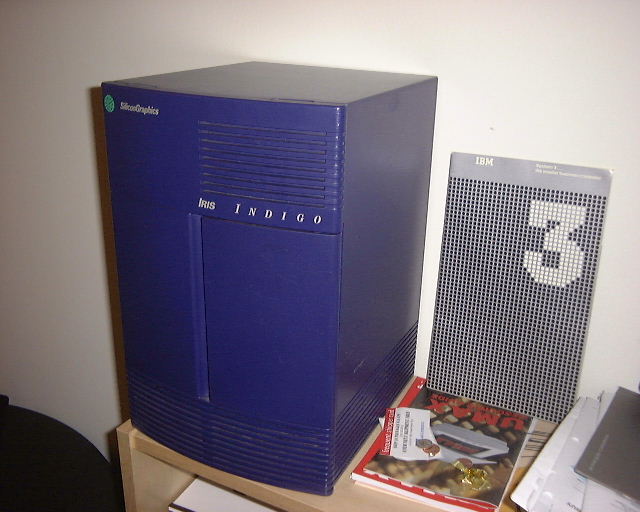 Another very elegant SGI machine - my Indigo. 150Mhz R4000, 128Mb, Elan graphics. Perhaps SGIs best-ever case design.